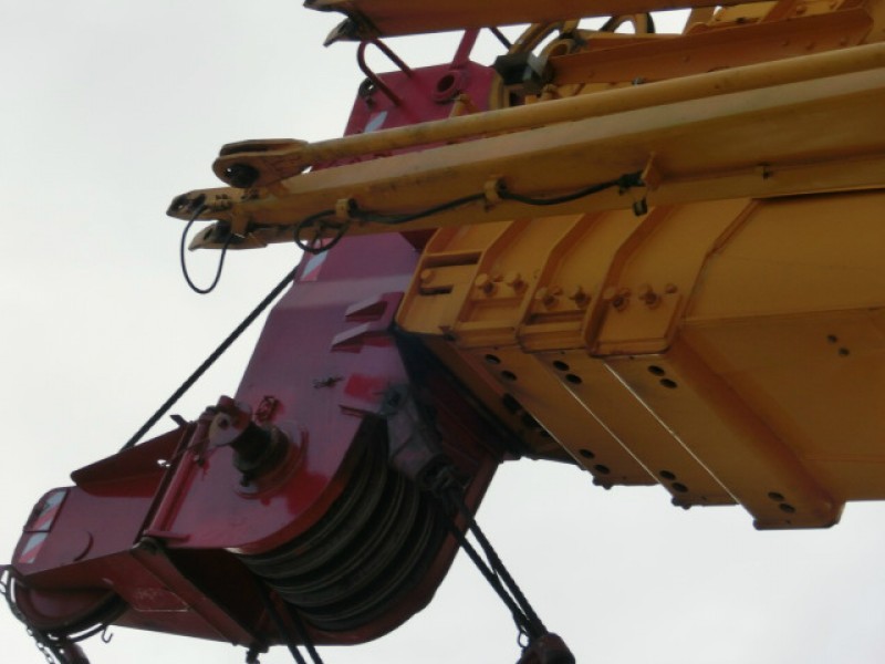 Габариты крана в мм: 12600 дл, 3000 шир, 3780 выс. Максимальная длина гуська 14,5 м. Рабочий радиус стрелы с гуськом 40 м, рабочий градус стрелы 82 градуса. Двигатель Мицубиси 6D22-TС, мощность 320 лс. Кран в отличном техническом состоянии.